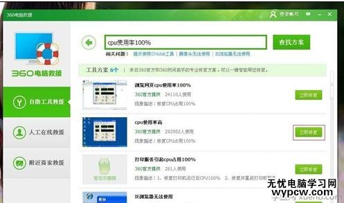 在搜索框內輸入“CPU使用率100%”,點擊查找方案
