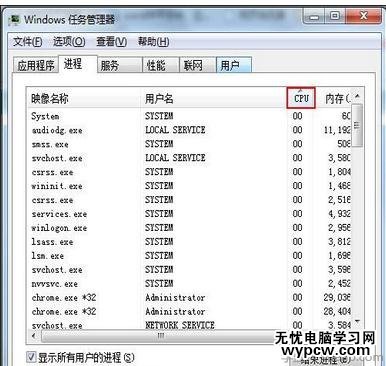 首先我們打開任務管理器,然后切換到cpu行列,對占用cpu的出程序逐一排查,查看哪個cpu程序占用的cpu忽高忽低的情況。找到占用cpu不穩定的進程將其結束掉(不是系統進程的前提下),如果發現時系統進程不能結束的話,那就系統的問題了。