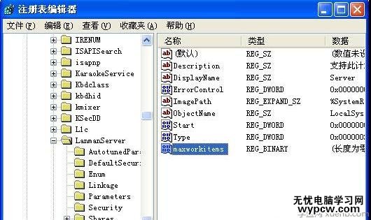3、在其右側窗口中新建一個名為“Maxworkitems”的DWord值,然后雙擊它;