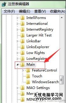 按照左側(cè)的側(cè)三角,依次展開文件夾菜單:HKEY_CURRENT_USER/Software/Microsoft/Inte.net Explorer/Main