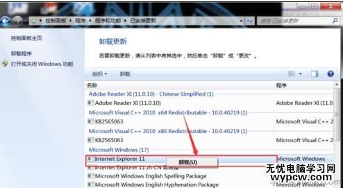 選擇“Inte.net Explorer 11”,點擊卸載