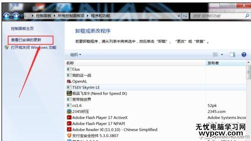 點擊“查看已安裝的更新”