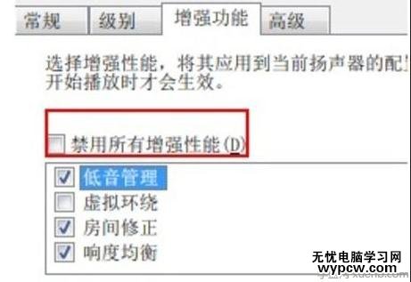 2、右擊揚聲器,選擇“屬性”,選擇“增強功能”;