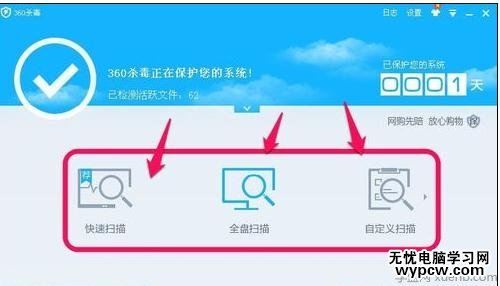 2然后點(diǎn)擊打開(kāi)360殺毒,全盤(pán)掃描一遍。