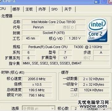 即可看到電腦最重要的硬件部分CPU和內存的一些參數,如下圖。