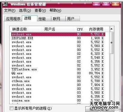 系統(tǒng)中毒也會(huì)導(dǎo)致CPU使用率高,CPU占用100%的情況(svchost.exe這些進(jìn)程會(huì)占用很高的cpu)