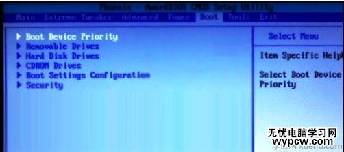 設置好后按鍵盤上的ESC鍵退回到上一級設置界面。再按左右方向鍵,選擇“BOOT”主菜單,選擇第一項“Boot Devicepriority”按回車進入: