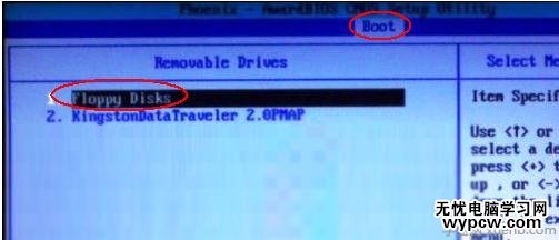接下來按ESC取消鍵,返回上一級設置界面,按上下方向鍵,選擇第二行的“Removeable Drives”項,并按回車進入: