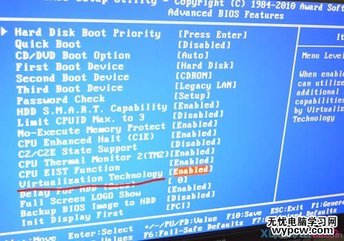 進入BIOS后,找到Virtualization Technology,把Disabled改為Enabled,然后選擇Save & Exit Setup,按Y就可以了,不同的主板菜單名字會有所不同,由需要的朋友過來看看吧!