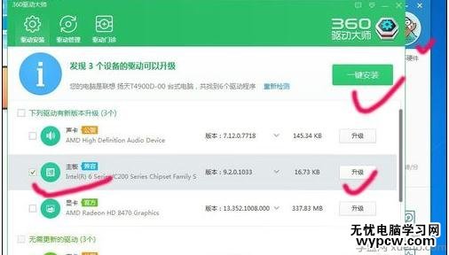 勾選可升級(jí)的主板驅(qū)動(dòng),點(diǎn)擊一鍵安裝