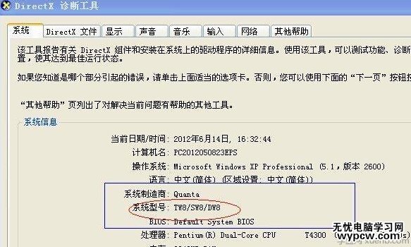 另:在Directx診斷工具頁面我們就可以查到主板型號,BOIS版本信息就是主板型號信息。