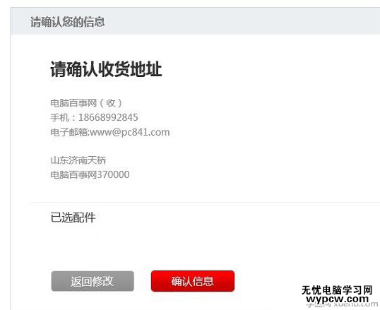 三、提交預約后,需要確認收貨地址,如果地址沒錯,點擊確認信息即可,如下圖所示: