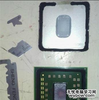 第一步:用刀片小心翼翼的從CPU的側(cè)邊慢慢劃開CPU粘膠,四周都要小心操作。操作時(shí)要小心別把CPU電路板劃到了,否則CPU就可能點(diǎn)不亮了哦~~~~