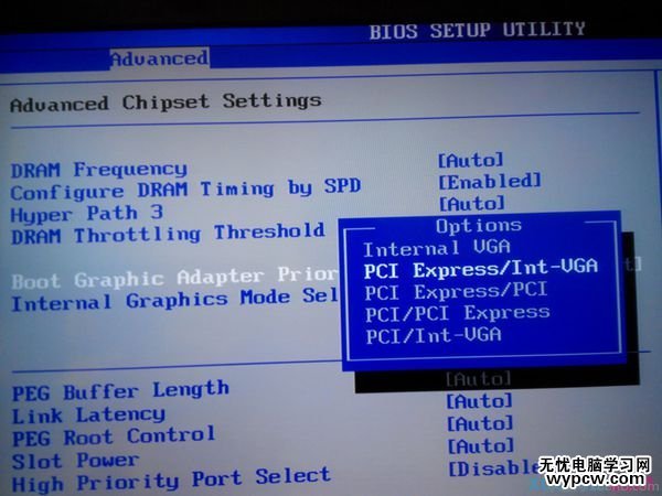 在這個項目下,可選顯卡項一般為插槽類型,如PCI,AGP,PCI-E等,或IGD,PED等字樣。