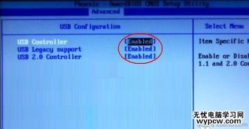 進入“USB Configuration”后,將所有項都改成“Enabled”,按上下方向鍵選中后按回車由“Disabled”改為“Enabled”即可: