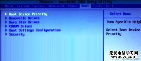 設置好后按鍵盤上的ESC鍵退回到上一級設置界面。再按左右方向鍵,選擇“BOOT”主菜單,選擇第一項“Boot Devicepriority”按回車進入: