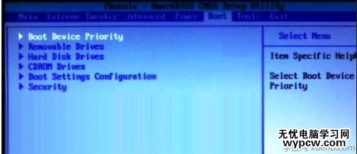 設置好后按鍵盤上的ESC鍵退回到上一級設置界面。再按左右方向鍵,選擇“BOOT”主菜單,選擇第一項“Boot Devicepriority”按回車進入: