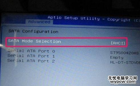 4,其界面如下圖顯示,在SATA Mode Selection這一項,按Enter進入,對AHCI與IDE進行選擇,如果用PE裝系統,沒有發現硬盤,就要選擇IDE這一項。