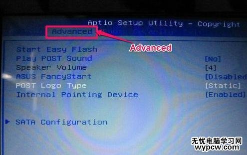 3,由于是BIOS,不能使用鼠標,所以用左右方向鍵,把光標移到Advanced這一項,這一項為高級BIOS設置項,下面介紹幾具主要的設置項: