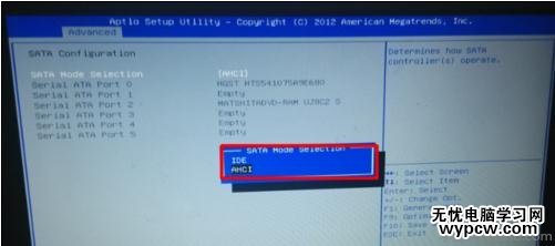 8SATA接口的模式,可選擇的有IDE和AHCI模式,windows XP原生不支持SATA,那么需要在這里修改為IDE才能夠正確的識別硬盤并安裝;如果正常使用情況下修改這里的模式的話,也會引起藍(lán)屏。