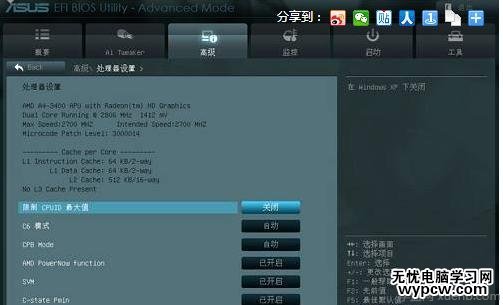 用鼠標點擊“CPU設(shè)置“進入CPU設(shè)置頁面,頁面上部顯示CPU相關(guān)信息,下部是CPU工作模式、電壓等相關(guān)設(shè)置,一般保持默認就好。