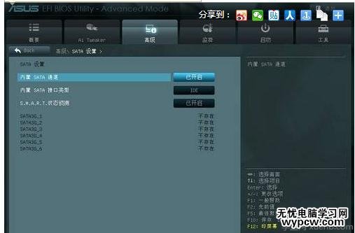 用鼠標點擊“SATA設(shè)置“進入SATA設(shè)置頁面,此時沒有硬盤,全是不存在。SATA接口模式有IDE、AHCI、和RAID三種,點擊后面選項框可以改變接口狀態(tài)。