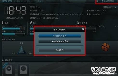 點擊“退出/高級模式”彈出菜單,可以選擇進入高級模式,或者保存并退出設(shè)置。