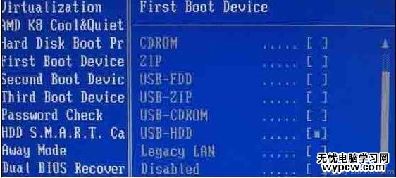 如果是想使用USB啟動,可以選擇USB-HDD或USB-ZIP(根據(jù)USB啟動盤類型確定),現(xiàn)在的主板 啟動順序設(shè)置大同小異。選擇First Boot Device會彈出一個設(shè)備選擇框,里面有幾個選項(如下圖),選擇一般USB-HDD即可(決定于USB啟動盤的類型),當(dāng)然你的U盤一定要是PE啟動盤或DOS啟動盤或帶其它引導(dǎo)程序的啟動盤才可以。