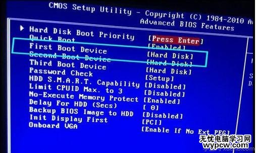 進(jìn)入“BIOS”設(shè)置, 選擇“First Boot Device”設(shè)置為“Hard Disk”