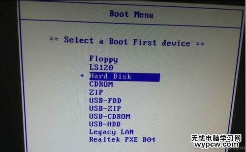 以上都設(shè)置好后按“F10”保存重啟電腦按“F12”進(jìn)入如圖顯示,選擇“+ Hard Disk”回車進(jìn)入