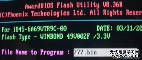 看到 Do you want to save bios (是否保存bois)了嗎? 當然按Y。 接著出現(xiàn)下圖:也添上777.bin回車。 回到DOS提示符。