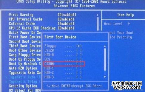 開機時按Esc鍵調出快速啟動菜單,用鍵盤上的方向鍵,選擇CD/DVD ROM,按回車鍵即可讓電腦從光驅啟動: