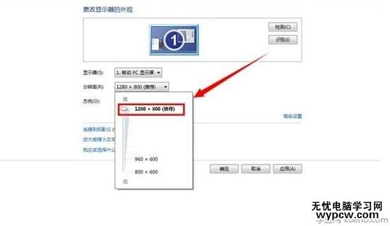 2、打開屏幕分辨率頁面后,在分辨率設(shè)置下拉框中,將分辨率調(diào)節(jié)到最高(推薦),然后點(diǎn)擊“確定”按鈕,如下圖所示: