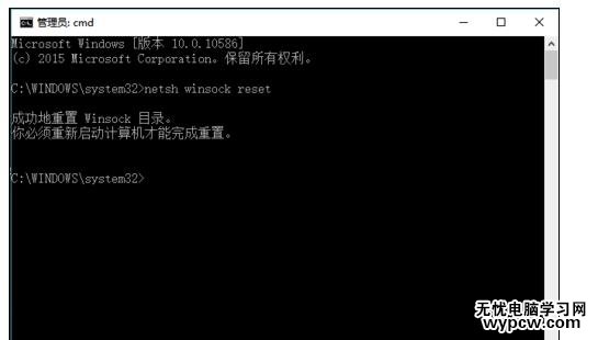 輸?a target="_blank" class="infotextkey">.netsh winsock reset可以復制進去,然后按下回車鍵即可,然后按提示重啟電腦。