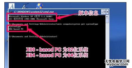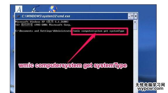 6,在打開的“命令提示符”窗口中,輸入“wmic computersystem get systemType”,然后按Enter確定。