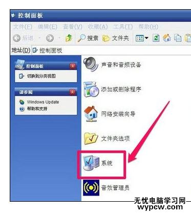 2,在“控制面板”下,選擇“系統(tǒng)”項。