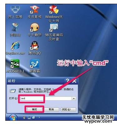 5,在“運行”框中輸入cmd個詞,然后按“確定”。