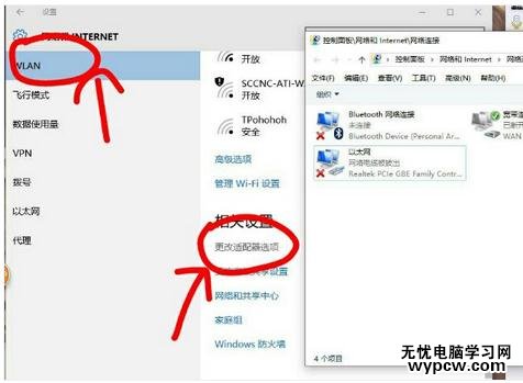 在“WLAN”一欄下拉到底,點擊“更改適配器選項”