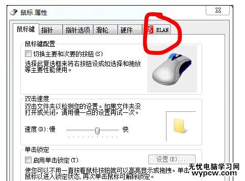 在打開的“鼠標屬性”頁,點擊“ELAN”,如下圖所示: