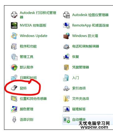 在打開的控制面板中找到“鼠標”,點擊,如下圖所示: