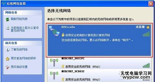 8、返回到“無線網(wǎng)絡配置”我們就可以看到剛才添加的可用網(wǎng)絡。