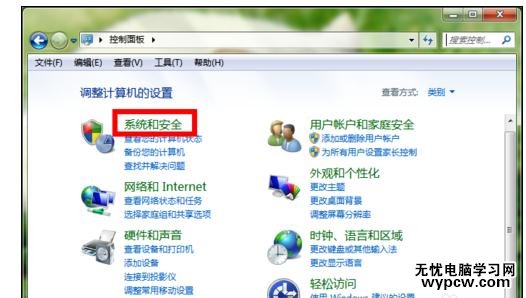 在打開頁(yè)面中,選擇系統(tǒng)和安全