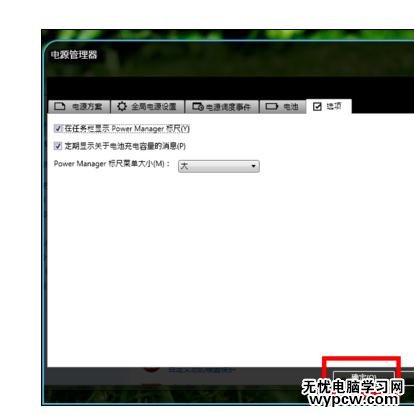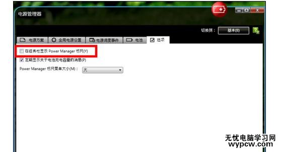 這時(shí),我們可以看到在任務(wù)欄顯示power manager標(biāo)尺是沒(méi)有選中的,在前面打上√