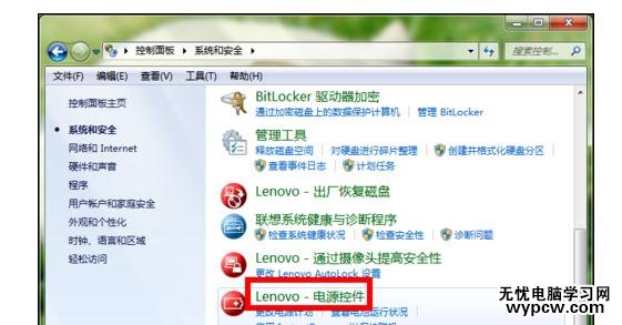 在新頁(yè)面中,在最下面找到Lenovo電源控件,點(diǎn)擊打開