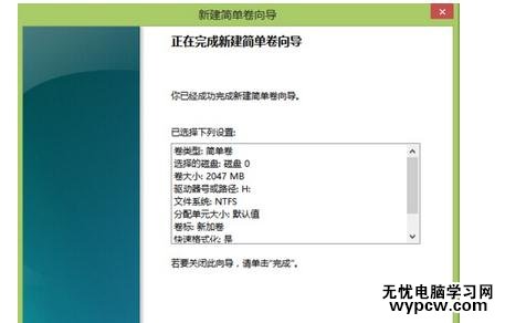 7、選擇新分區(qū)單擊右鍵后選擇新建單元卷,就會出現(xiàn)下圖界面。然后一直點擊下一步直到出現(xiàn)完成的按鈕,點擊完成。
