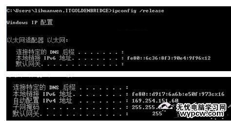 如果我們是通過DHCP獲取上網(wǎng)的IP地址的話,這時(shí)可以利用ipconfig /release命令釋放現(xiàn)有的IP地址信息,然后利用ipconfig /renew從DHCP獲取合適的IP地址。這種方法能解決部分沒有獲取到正確IP地址信息、DNS等情況,有時(shí)候在有DHCP的環(huán)境下手動(dòng)配置了IP地址也會(huì)處于連接受限制或在網(wǎng)絡(luò)圖標(biāo)上顯示感嘆號(hào)!,這時(shí)候需要把IP地址設(shè)置成動(dòng)態(tài)獲取。