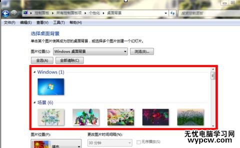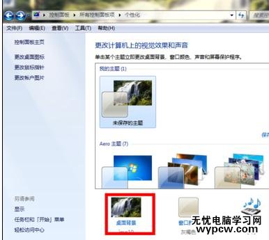 選擇最下面的“桌面背景”打開,在背景框里選擇自己喜歡的場景。