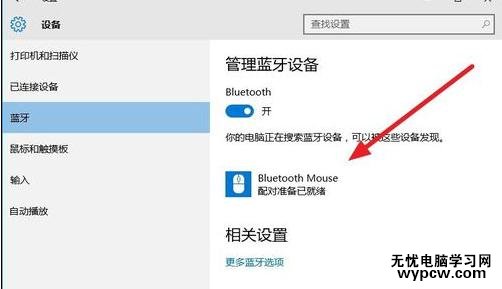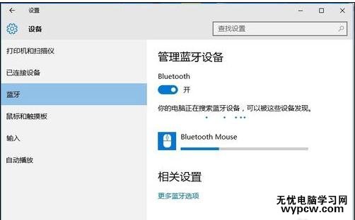 此時系統開始自動搜索周圍打開的可見藍牙設備,這時我們把藍牙鼠標的右鍵左鍵中鍵(就是滾輪)同時按下5s以上,