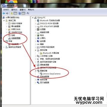 右擊計算機,點擊管理進入計算機的管理界面,選擇設備管理器,查看里面的攝像頭驅動是否已經安裝并正常運行。