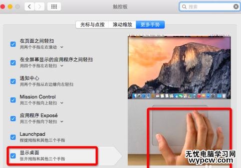 如果覺得Fn+F11離得太遠,可進入“系統偏好設置”-“mission control”-“顯示桌面”,修改為“Fn”,會更加方便操作。